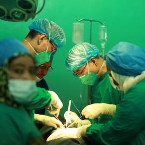 8月8日,在蘇丹喀土穆恩圖曼友誼醫院,中國醫療隊隊員與當地醫務人員為患者實施手術。