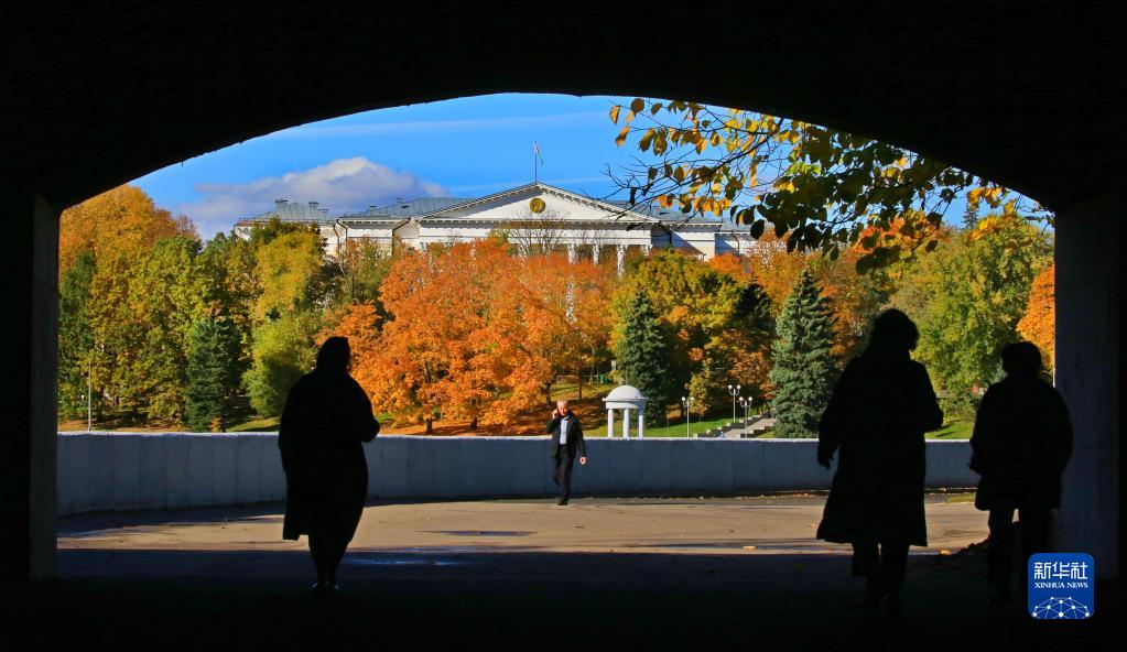 10月10日,人們在白俄羅斯明斯克街頭散步。