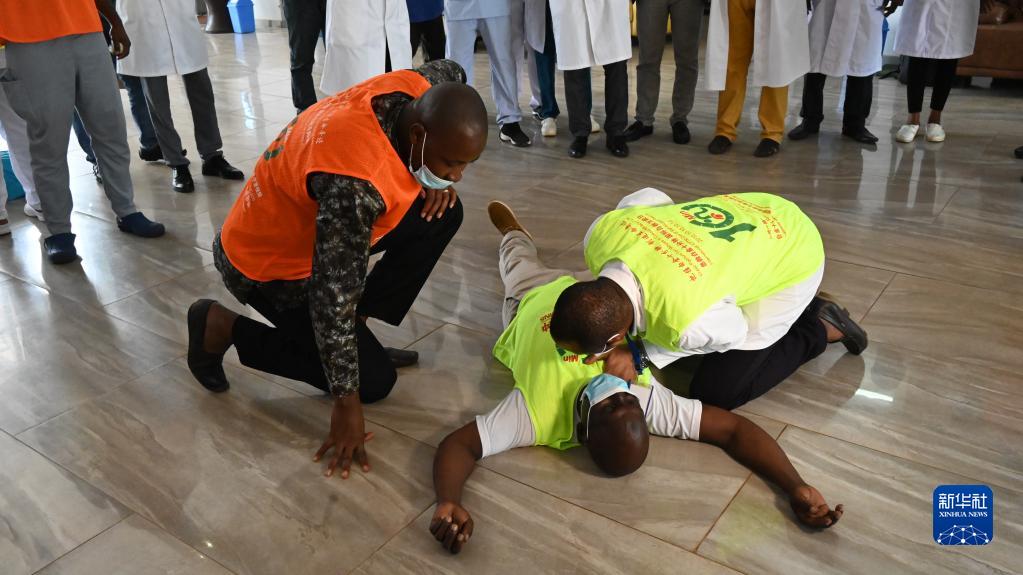 第29批中國援幾內亞醫療隊10日在幾內亞首都科納克里的中幾友好醫院開展急救培訓活動。此次活動主題為“急救白金十分鐘,國際自救互救日”,援幾醫療隊為中幾友好醫院的醫護人員開展了心肺復蘇、海姆立克急救、轉運患者、急診接診等項目的演練和培訓。