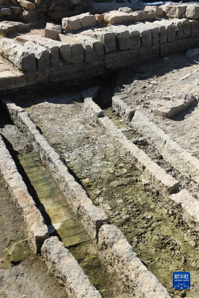 這是朔門古港遺址發掘出的古水渠(10月10日攝,無人機照片)。