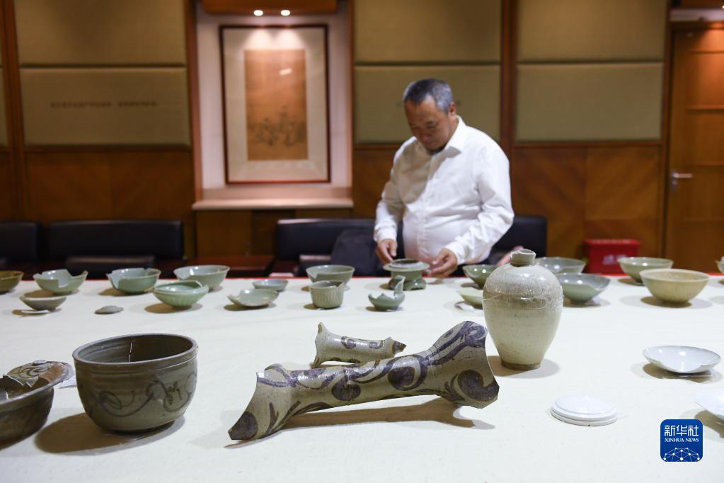 10月11日,溫州市文物考古研究所工作人員在溫州市博物館庫房點閱溫州朔門古港遺址出土陶瓷器。