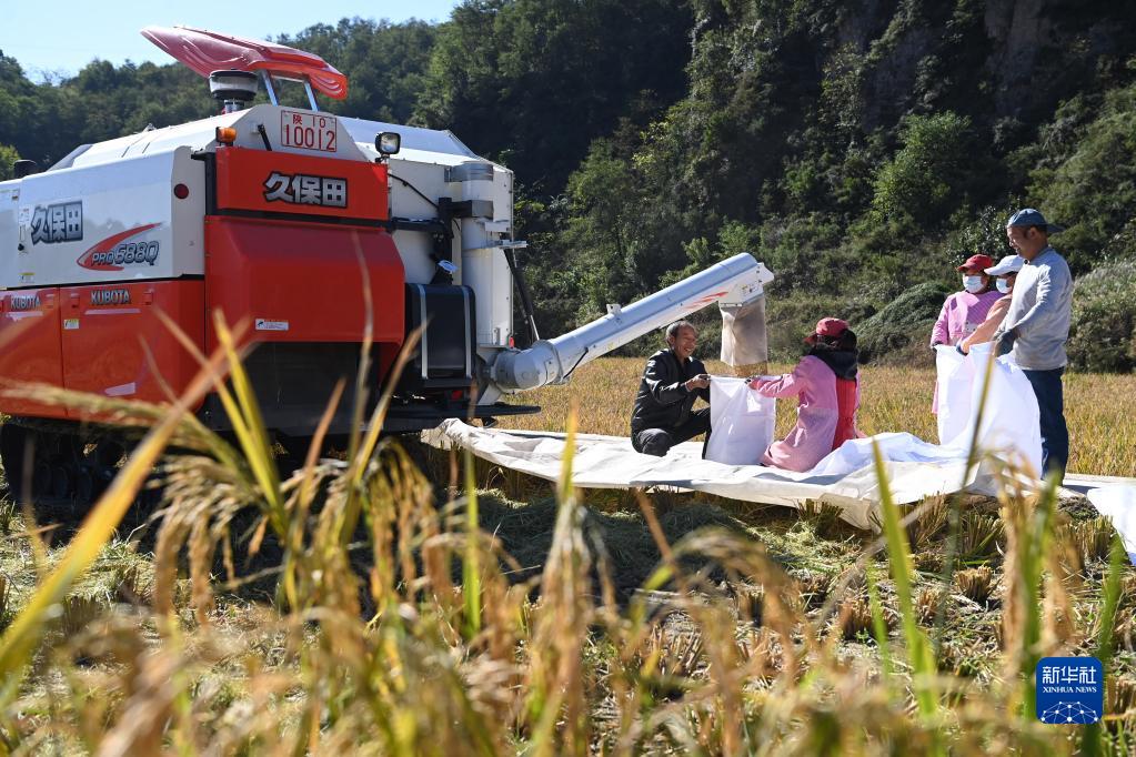 當日,蘇陜協作項目陜西省洛南縣旱改水水稻種植示范園培育種植的150畝優良水稻開始收割。