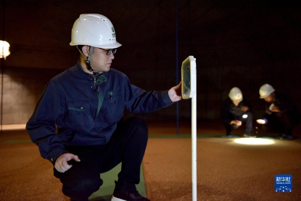 10月11日,中儲糧邢臺倉儲有限責任公司工作人員在淺圓倉內查看溫度、濕度等數據。