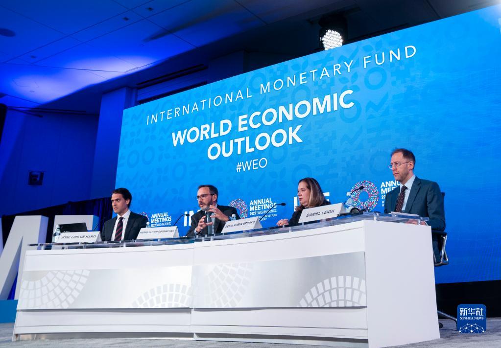 這是10月11日在美國華盛頓拍攝的國際貨幣基金組織(IMF)《世界經濟展望報告》新聞發布會。