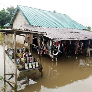 這是10月6日在尼日利亞南部巴耶爾薩州薩格巴馬區,房屋被洪水包圍。