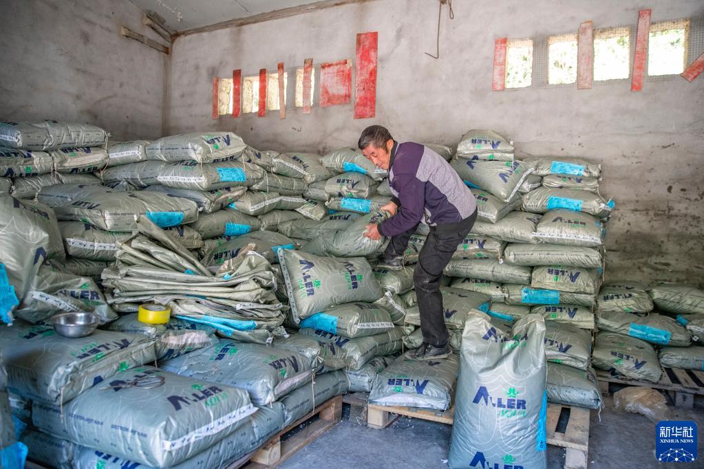 10月11日,在重慶市城口縣蓼子鄉明安村冷水魚產業基地,工作人員在搬運魚食。