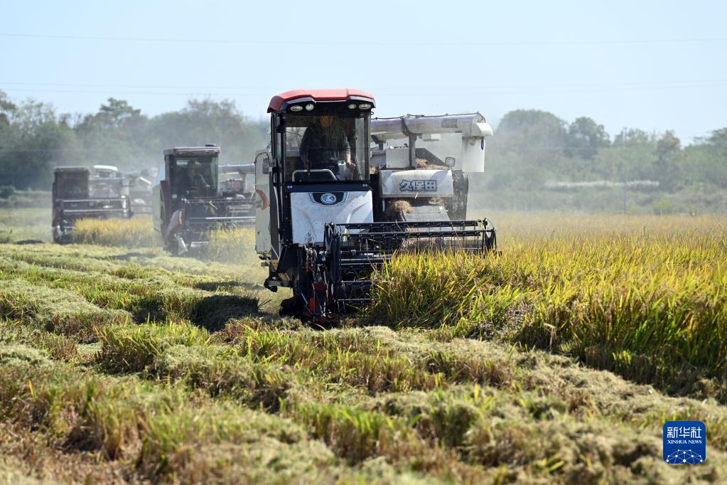 金秋時節,在長江沿岸的安徽省蕪湖市繁昌區,大片水稻田陸續迎來豐收,當地農民搶抓晴好天氣收割水稻。金黃的稻田、繁忙的長江主航道和田間地頭穿梭的收割機,共同組成一幅美麗的江畔秋收圖景。
