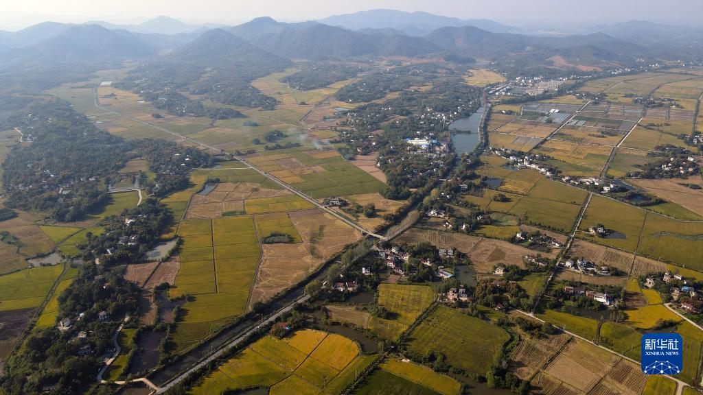 10月11日在安徽省蕪湖市繁昌區平鋪鎮拍攝的稻田(無人機照片)。
