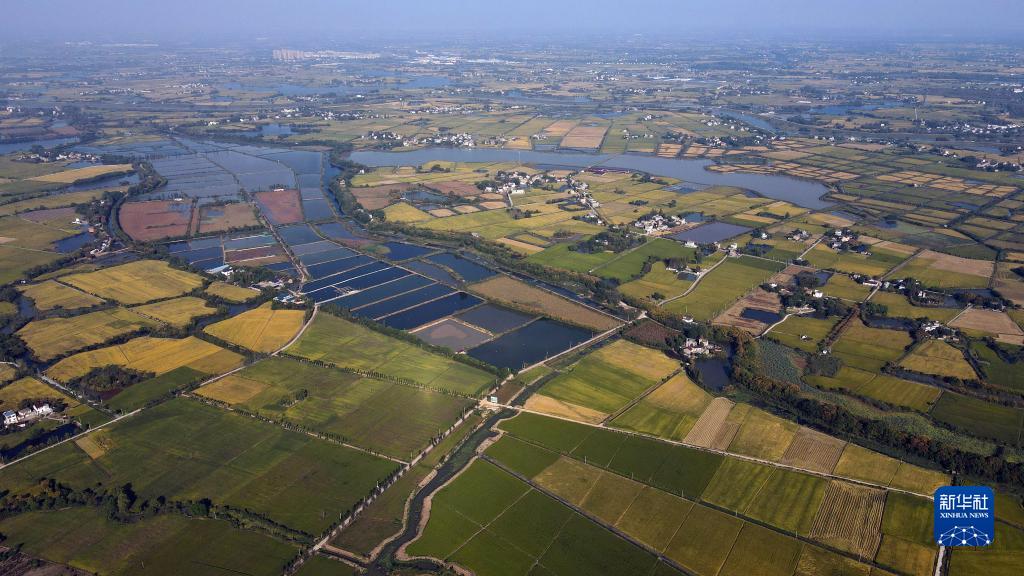 10月11日在安徽省蕪湖市繁昌區平鋪鎮拍攝的稻田(無人機照片)。