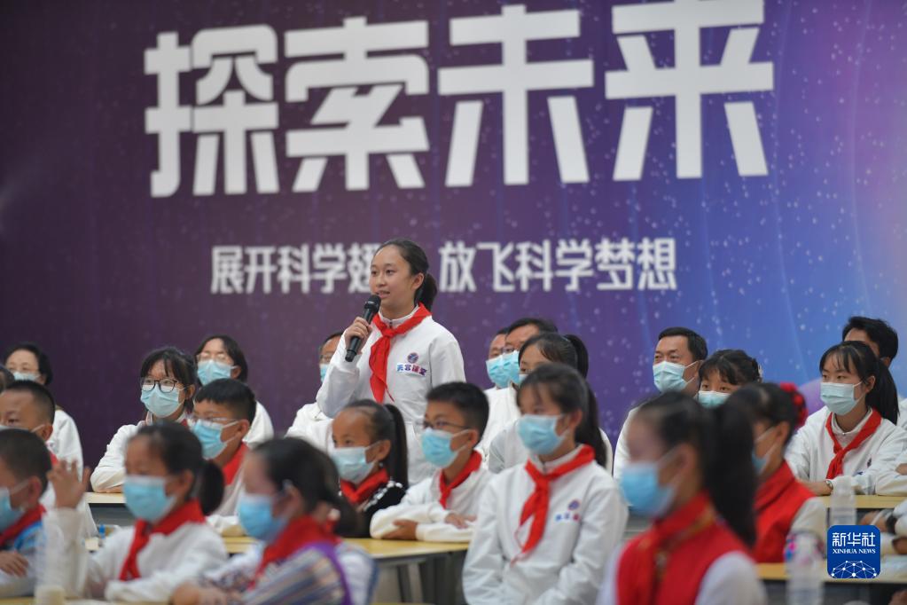 10月12日,學生在云南省大理新世紀中學收看“天宮課堂”第三課時向航天員提問。