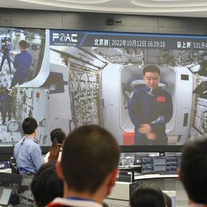 當日下午,“天宮課堂”第三課在中國空間站正式開講并直播,神舟十四號飛行乘組航天員陳冬、劉洋、蔡旭哲進行太空授課。