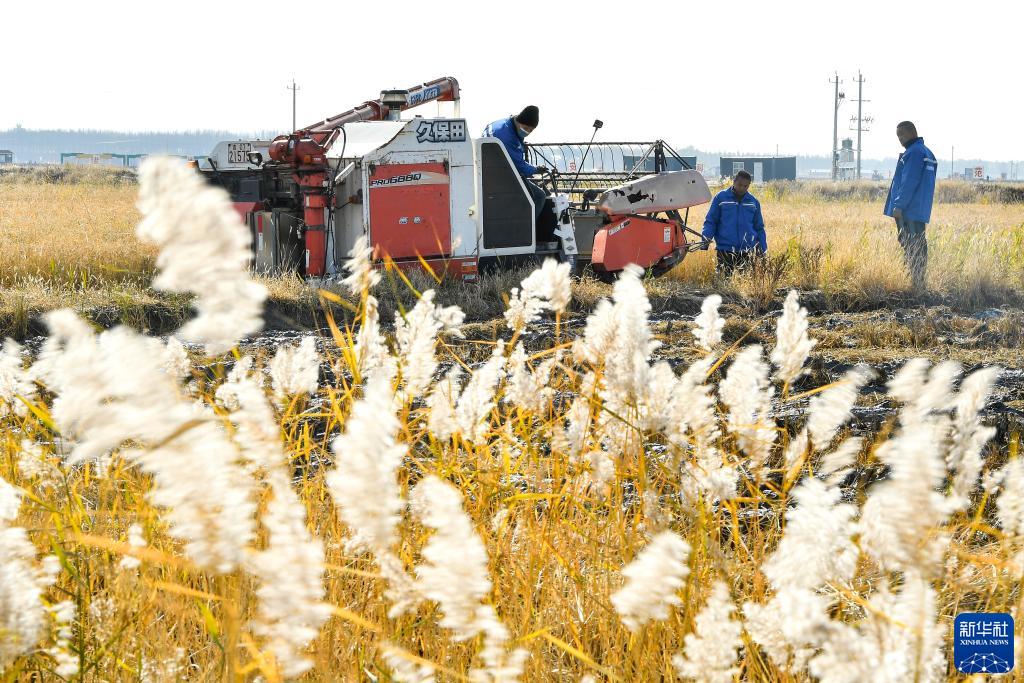 金秋十月,吉林省大安市的田野里一派豐收景象,當地農民搶農時、忙秋收,確保顆粒歸倉。