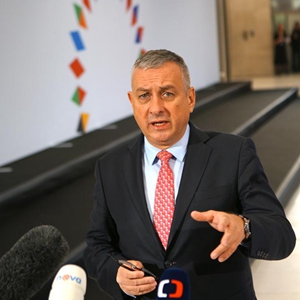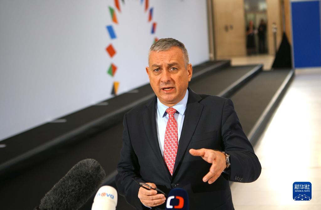 10月12日,在捷克首都布拉格,歐盟輪值主席國捷克工業和貿易部長約瑟夫·西克拉在歐盟能源部長非正式會議前對記者講話。