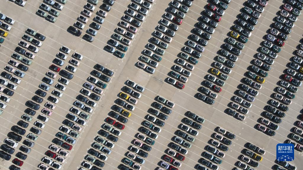 10月12日在位于蕪湖市的奇瑞汽車股份有限公司新能源一期工廠拍攝的等待交付的新能源汽車(無人機照片)。