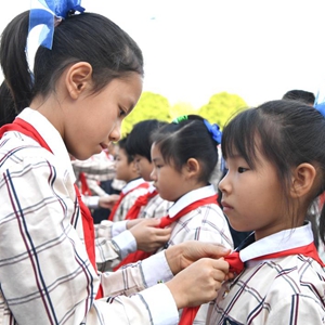 當日是中國少年先鋒隊建隊73周年紀念日,廣西南寧市濱湖路小學舉行新隊員入隊儀式,497名小學生系上紅領巾,光榮加入中國少年先鋒隊。