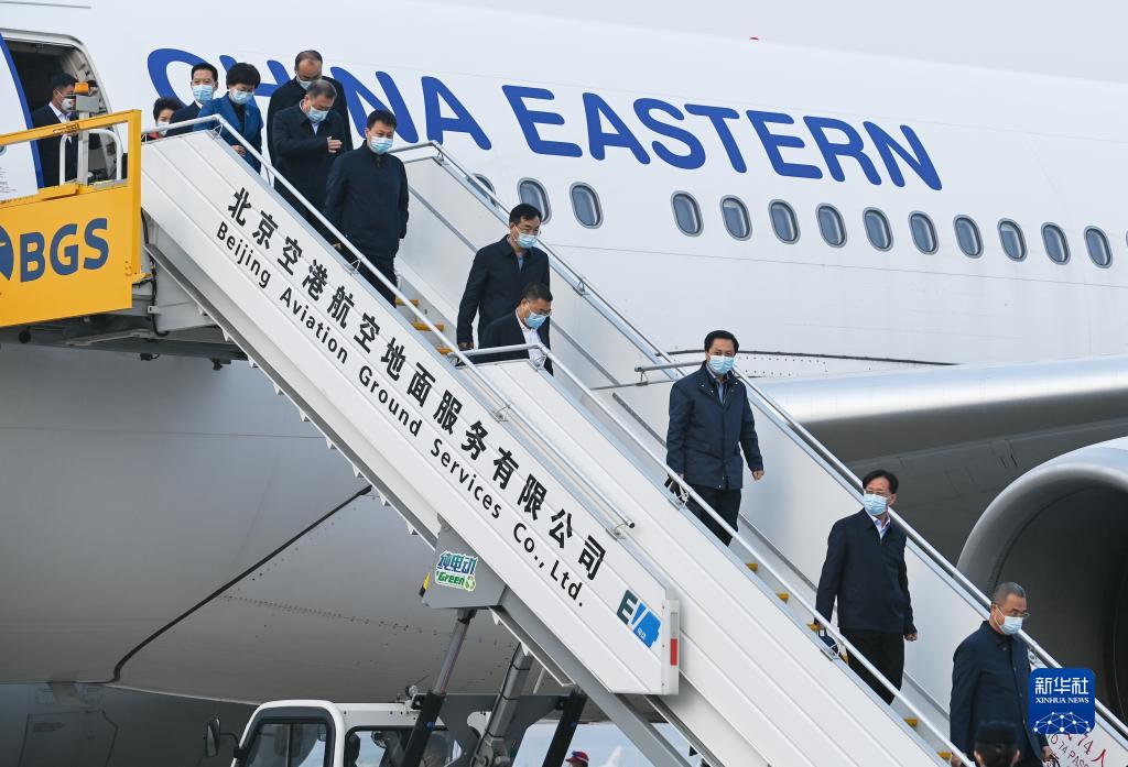 10月13日,來自陜西省的黨的二十大代表乘飛機抵達北京首都國際機場。新華社記者 張豪夫 攝