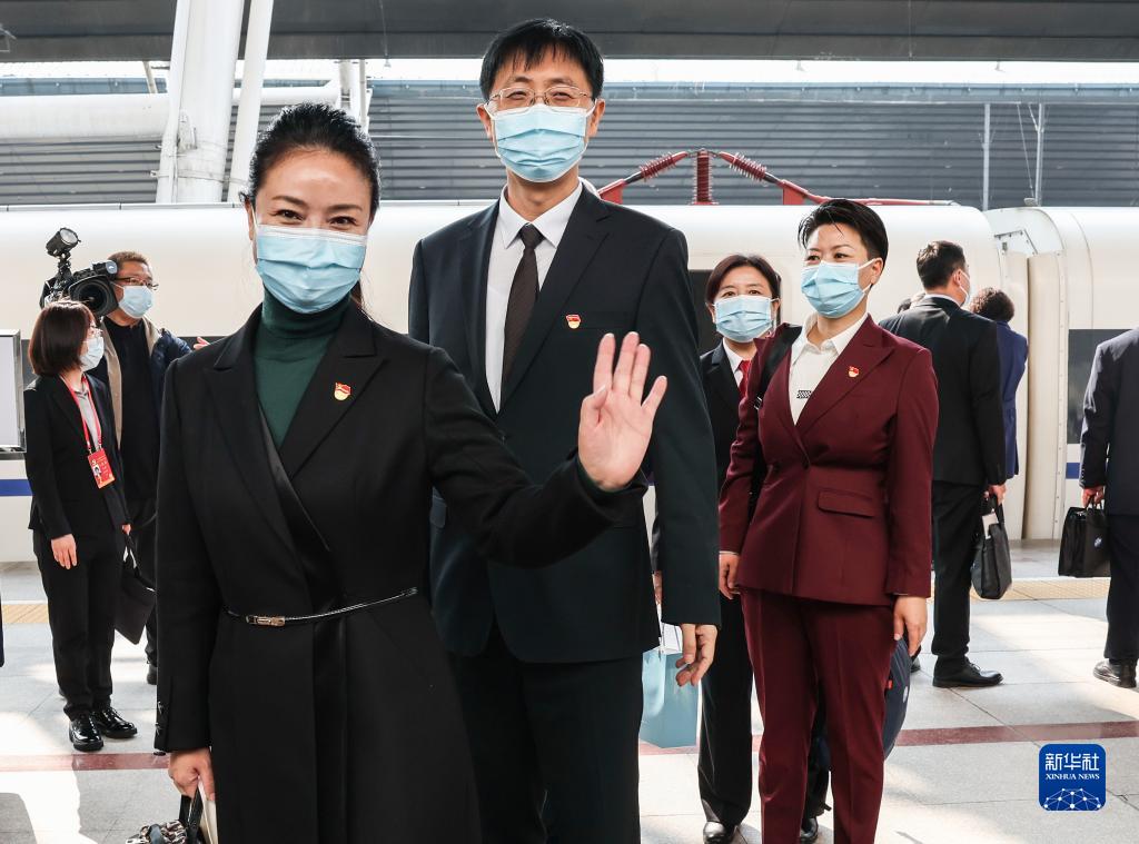 10月14日,來自山西省的黨的二十大代表乘高鐵抵達北京西站。
