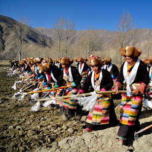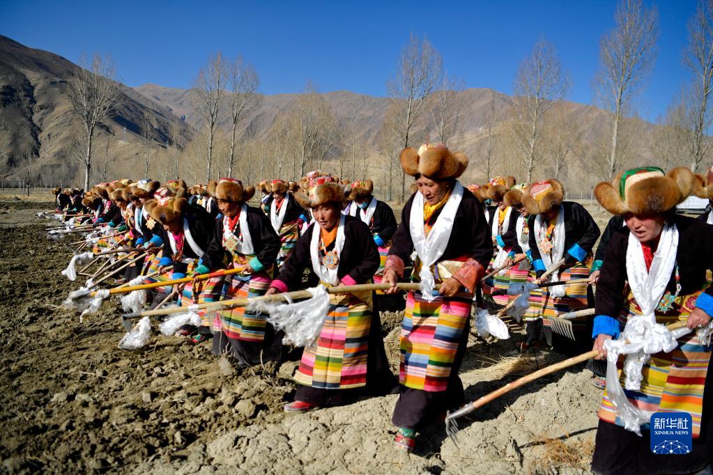西藏山南市乃東區門中崗社區春耕儀式現場(2022年3月16日攝)。