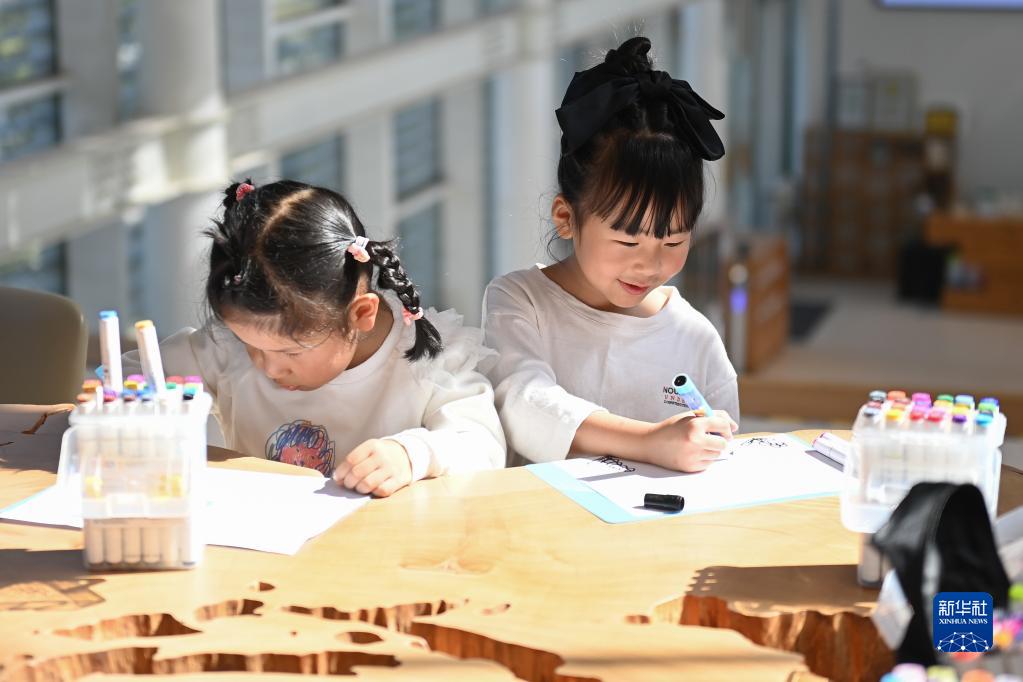 10月14日,湖州市吳興高新區中心幼兒園的小朋友在靈糧農場以水稻為主題進行繪畫。