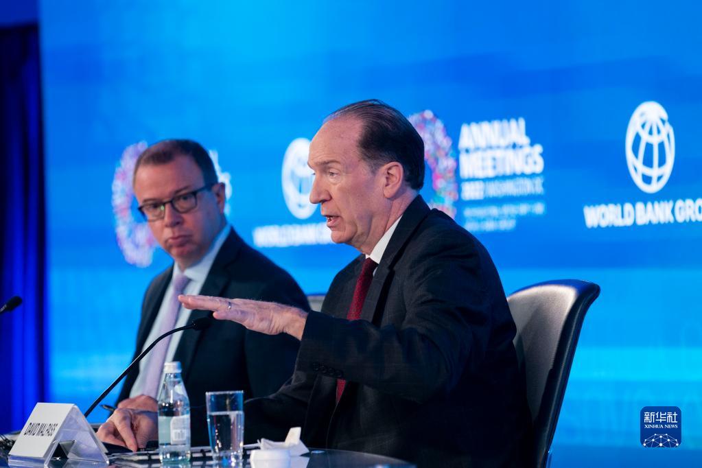 10月13日,在美國首都華盛頓,世界銀行行長馬爾帕斯(右)在記者會上發言。