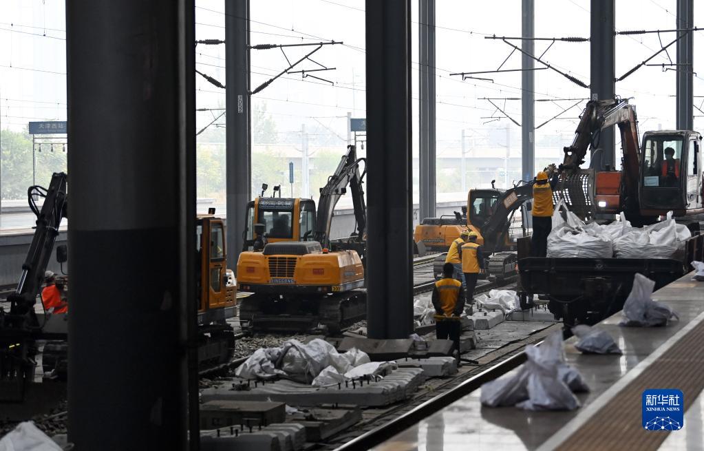 連日來,中國鐵路北京局集團有限公司天津工務段在天津西站線路設備提升改造會戰中,為充分利用“天窗”時間,使用中型換枕機進行機械化換枕作業,相較原來人工換枕的方式大大提高了施工效率。