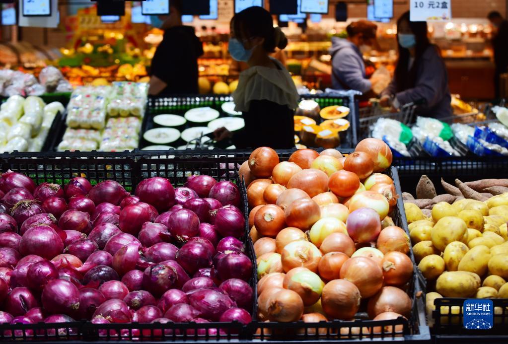 10月14日,消費者在江蘇省無錫市一家超市選購蔬菜。