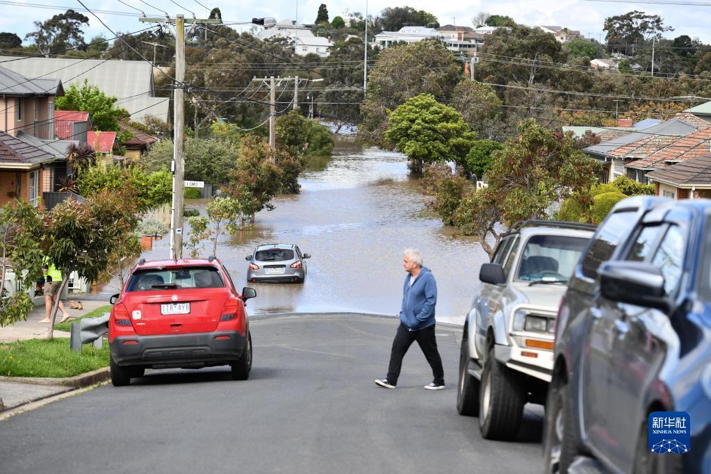 這是10月14日在澳大利亞維多利亞州拍攝的被洪水淹沒的街道。