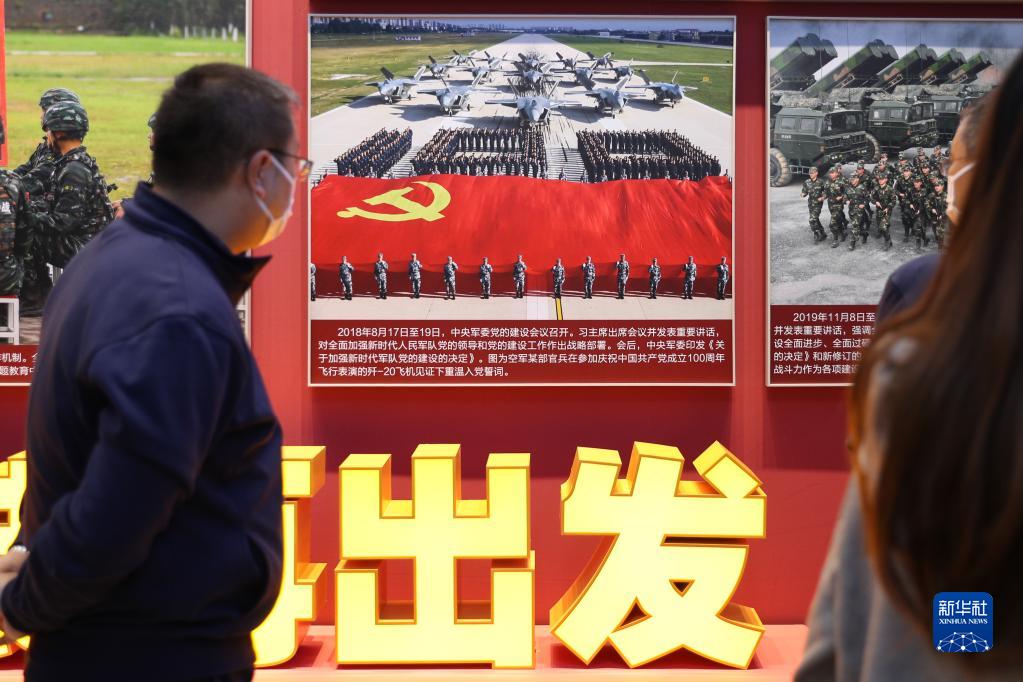 展覽中,一張空軍某部官兵重溫入黨誓詞的照片令人印象深刻,照片中的殲-20飛機,曾參加慶祝中國共產黨成立100周年飛行表演;一幅武警某部聚焦“忠誠維護核心、矢志奮斗強軍”深化主題教育開展宣講活動的巨幅照片,讓前來參觀的官兵深有感悟:“作為新時代革命軍人,我們要始終聚集在黨的旗幟下,做到絕對忠誠、絕對純潔、絕對可靠?!?/p>