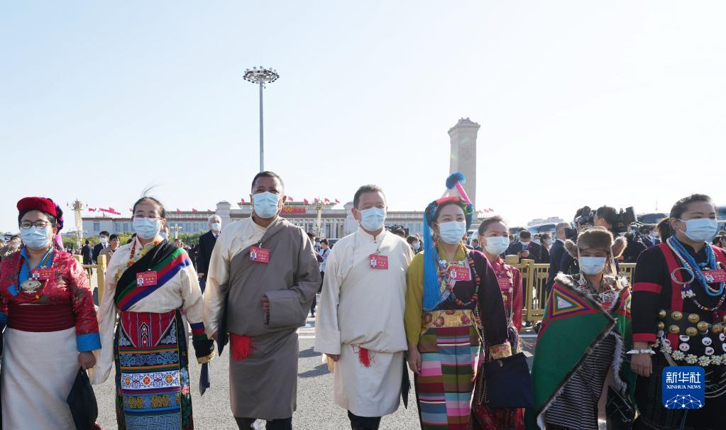 10月16日,中國共產黨第二十次全國代表大會即將在北京人民大會堂開幕。這是代表抵達會場。