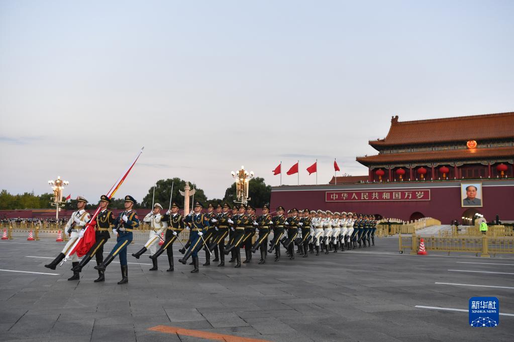 10月16日清晨,北京天安門廣場舉行升國旗儀式。
