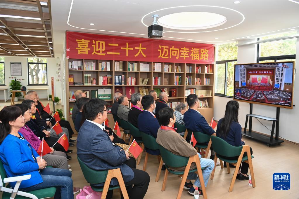 10月16日,浙江省杭州市西湖區翠苑街道翠苑一區社區的黨員觀看中國共產黨第二十次全國代表大會開幕會。