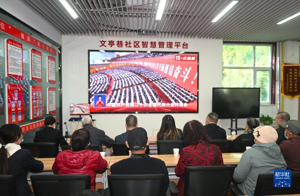 10月16日,在青海省西寧市城西區文亭巷社區黨群服務中心,居民在收看中國共產黨第二十次全國代表大會開幕會。
