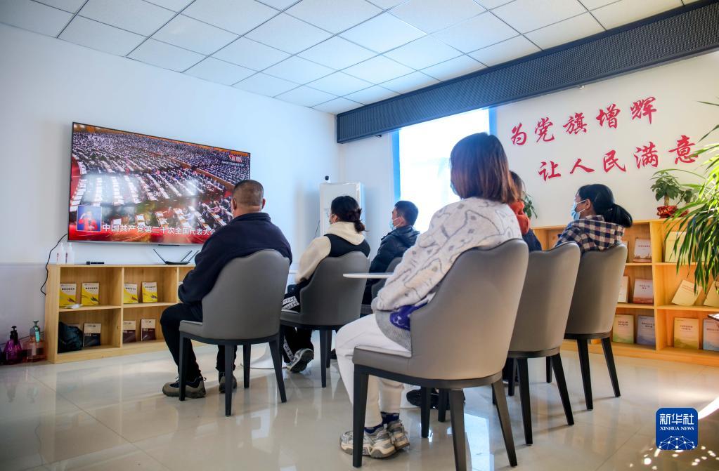 10月16日,在內蒙古自治區通遼市科爾沁區錢家店鎮孔家窩堡村,村民收看中國共產黨第二十次全國代表大會開幕會。
