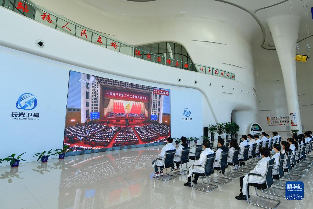 10月16日,在吉林省長春市,長光衛星技術股份有限公司科研人員收看中國共產黨第二十次全國代表大會開幕會。