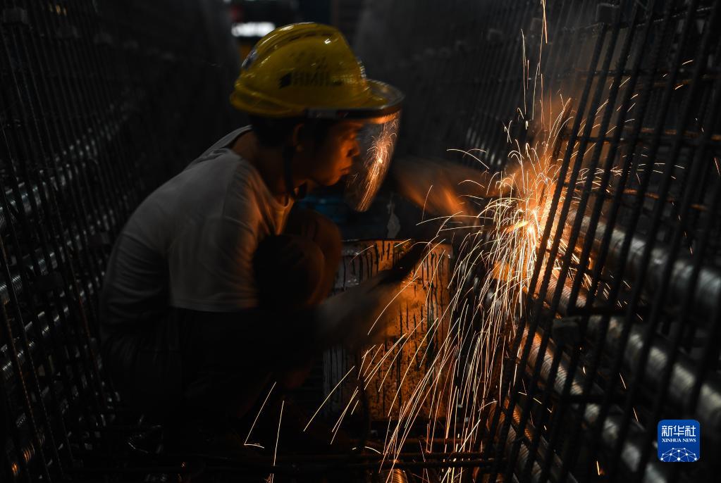 10月18日,工人在黃茅??绾Mǖ乐腔哿簣鲞M行焊接作業。