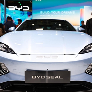 10月18日,在法國巴黎凡爾賽門展覽中心舉行的巴黎國際車展上,人們在比亞迪展區參觀。