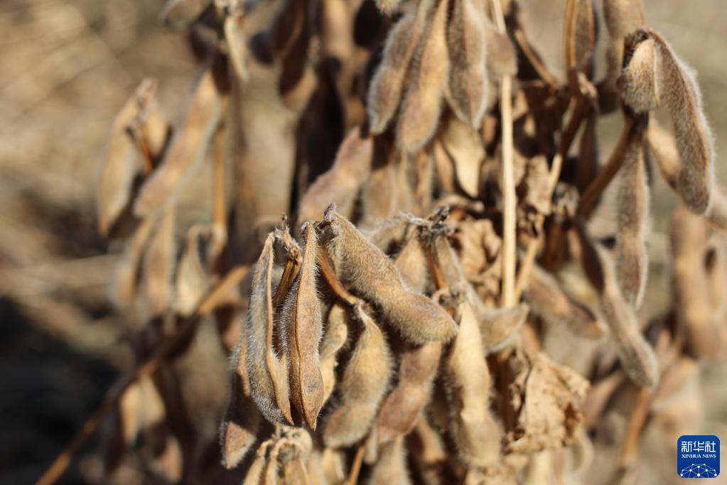10月7日在遼寧沈陽市法庫縣依牛堡子鎮崔家屯村拍攝的成熟大豆豆莢。