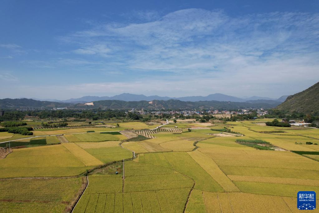 廣西柳州市融安縣浮石鎮長龍村的秋季田園風光(無人機照片,10月19日攝)。