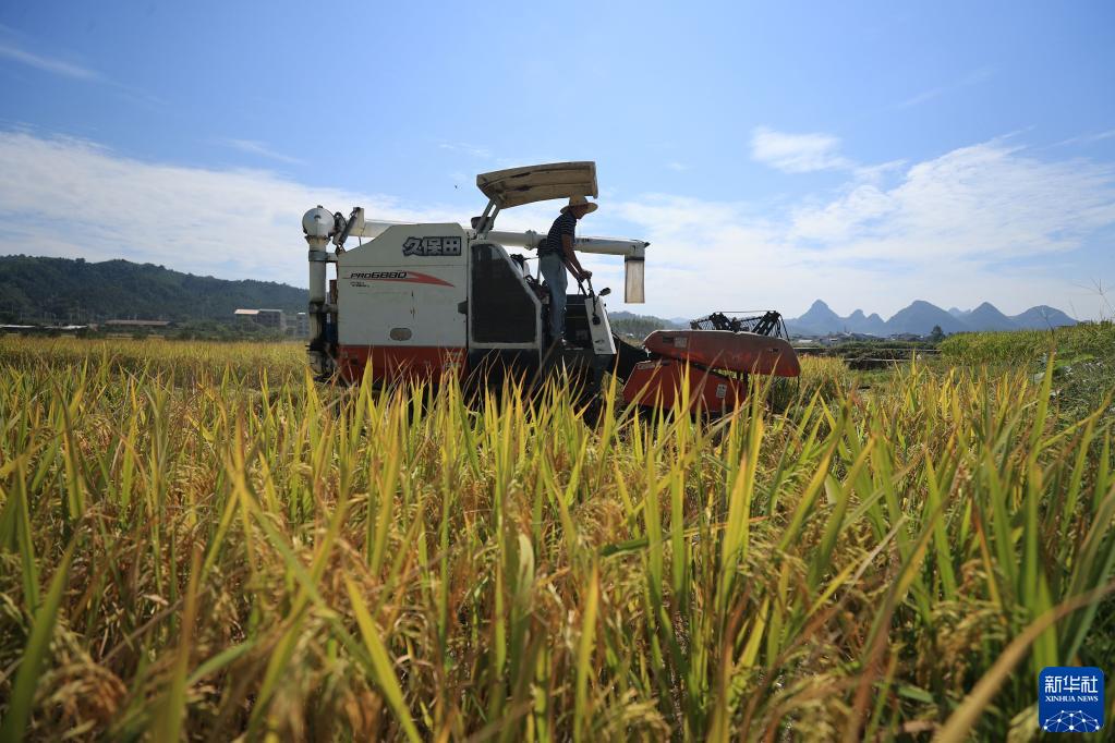 近日,廣西柳州市融安縣晚稻進入收獲季節。當地群眾抓住秋高氣爽的有利時機,搶收稻谷,確保顆粒歸倉。