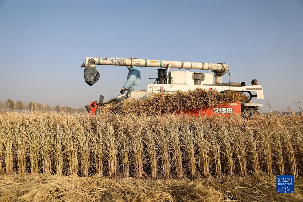 10月19日,在沈陽市蘇家屯區紅菱街道北紅村,村民駕駛收割機收割水稻。