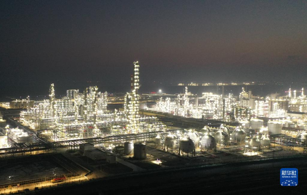 10月19日晚拍攝的天津市濱海新區南港工業區景象(無人機照片)。