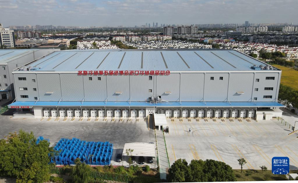 10月20日,空中俯瞰位于上海青浦區的名聯冷鏈第五屆進博會進口冷鏈食品總倉(無人機照片)。