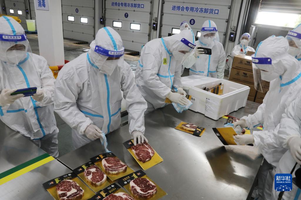 當日,第五屆進博會的第一批進口冷鏈食品展品,運抵位于上海青浦區的名聯冷鏈第五屆進博會進口冷鏈食品總倉。在接下來的10天內,預計約3000箱冷鏈食品展品,將在總倉集中完成最小包裝消毒和核酸檢測。