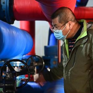 10月19日,吉林省長春國信供熱集團紅旗分公司熱源廠工人在查看鍋爐運行狀況。