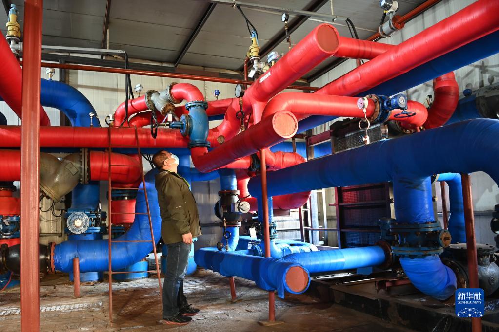 10月20日,在黑龍江省哈爾濱市呼蘭區一家供熱企業,工作人員在換熱站內查看儀表數據。
