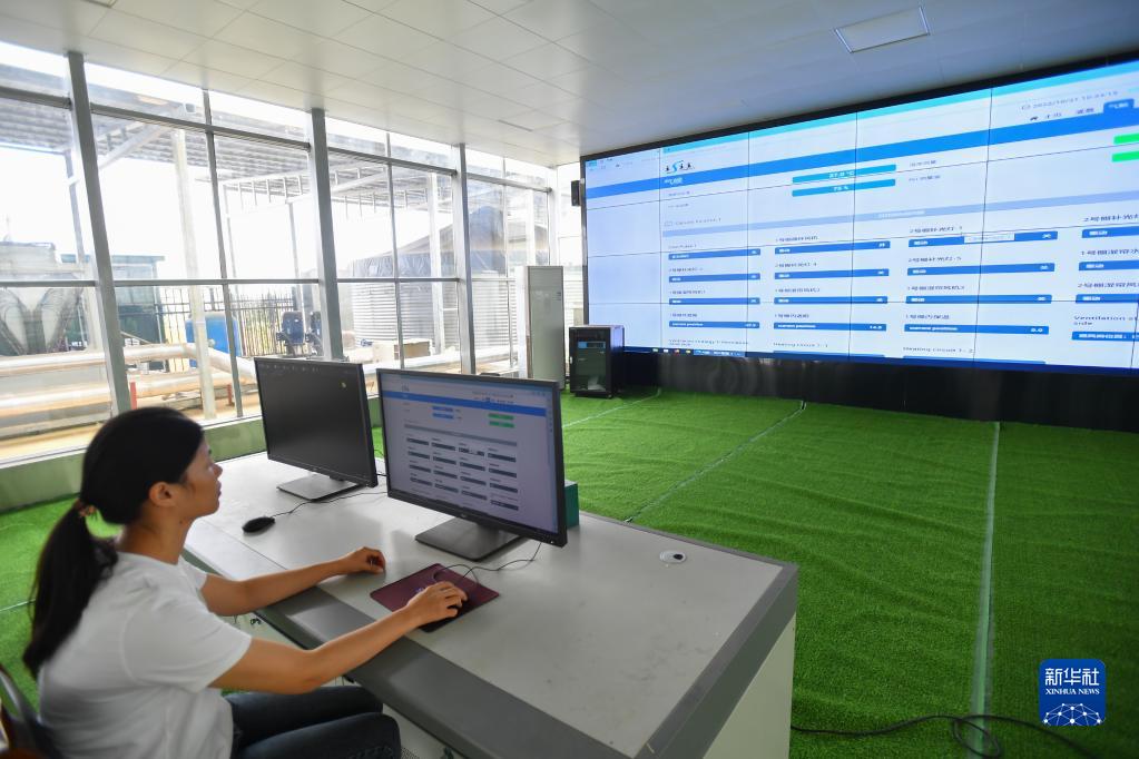 10月21日,在長沙市望城區靖港鎮眾興社區的辣椒基地,工作人員使用智慧農業管理系統監測棚內光照、濕度、溫度等情況。