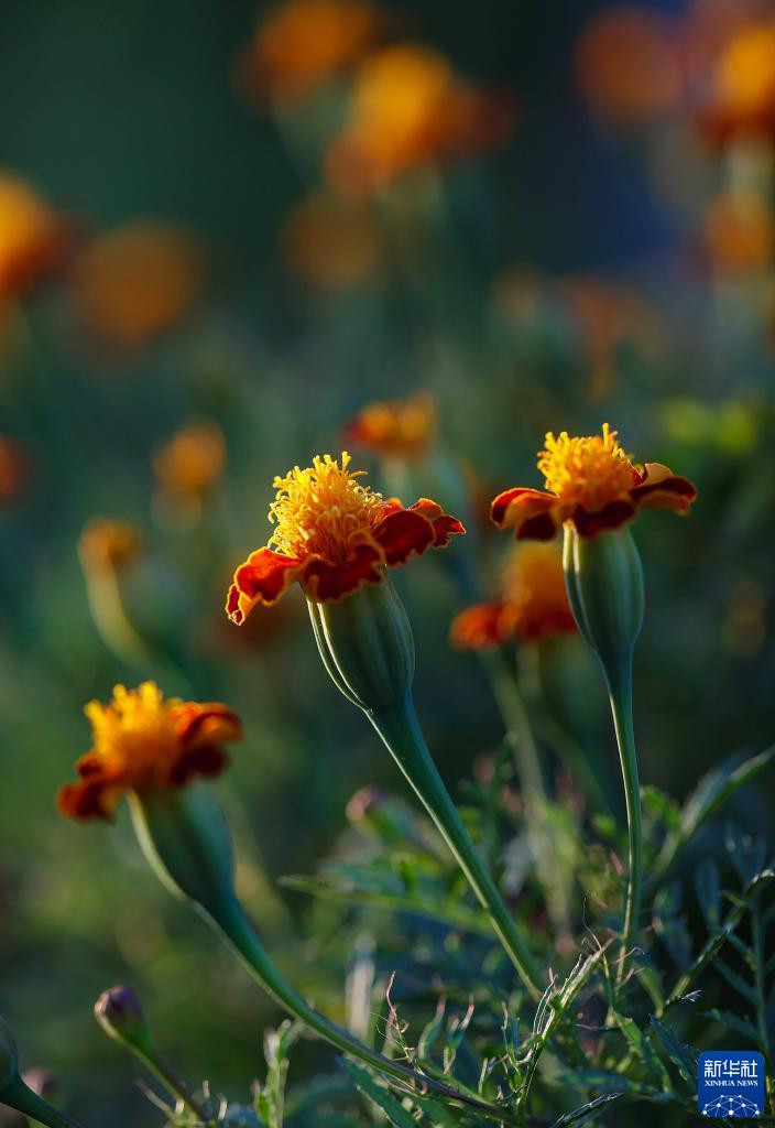 這是10月15日在貴州省黔東南苗族侗族自治州丹寨縣興仁鎮拍攝的萬壽菊。