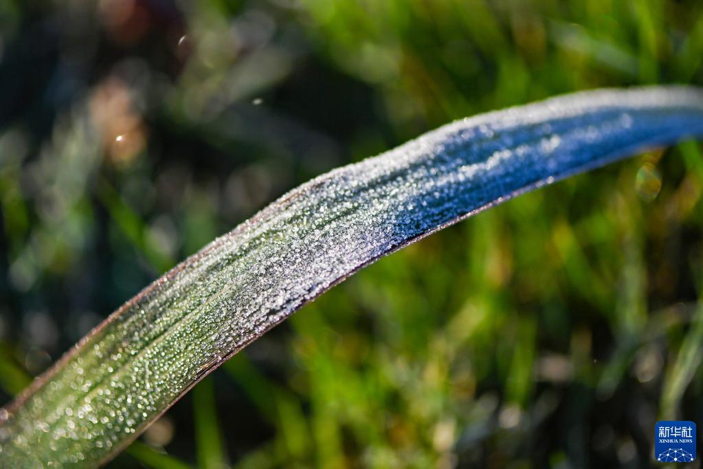 這是10月18日在山東省青州市云門山森林公園拍攝的結霜的植物。
