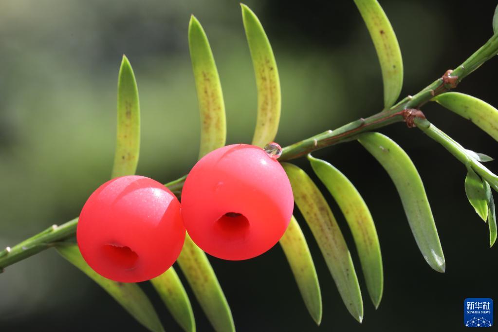 10月14日,在云南省騰沖市來鳳山國家級森林公園,國家一級保護植物紅豆杉的果實正值成熟。