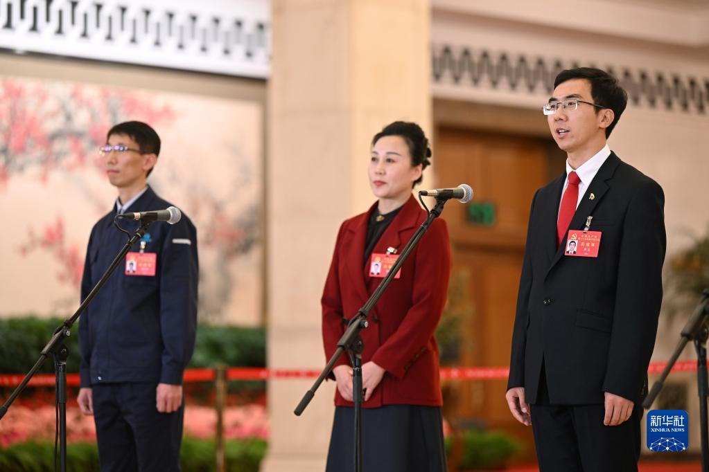 這是閉幕會后,洪家光、楊浪浪、周雷代表(自左至右)接受采訪。